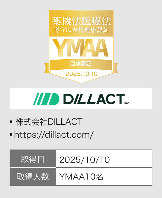 YMAAマークは薬機法・医療法の広告、KTAAマークは広告の景表法についての広告代理店や広告担当者向けの認証マークです。